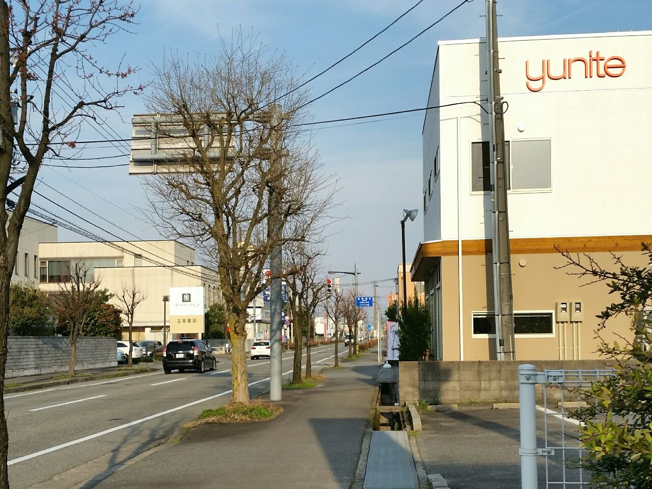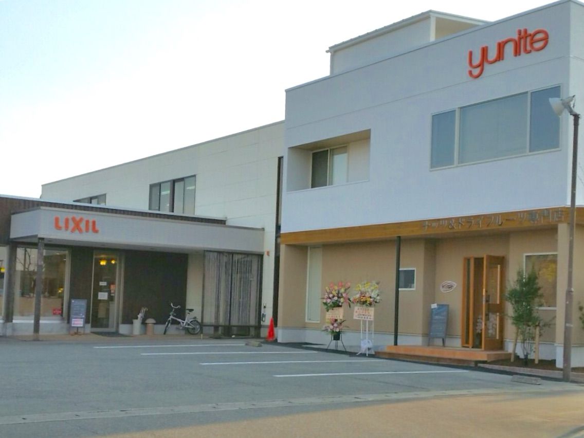 リフォームのお店『yunite(ユニテ)』の敷地内。
