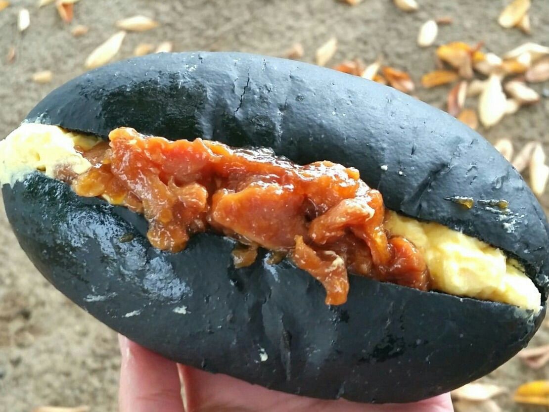 珍しい白と黒のコッペパン。