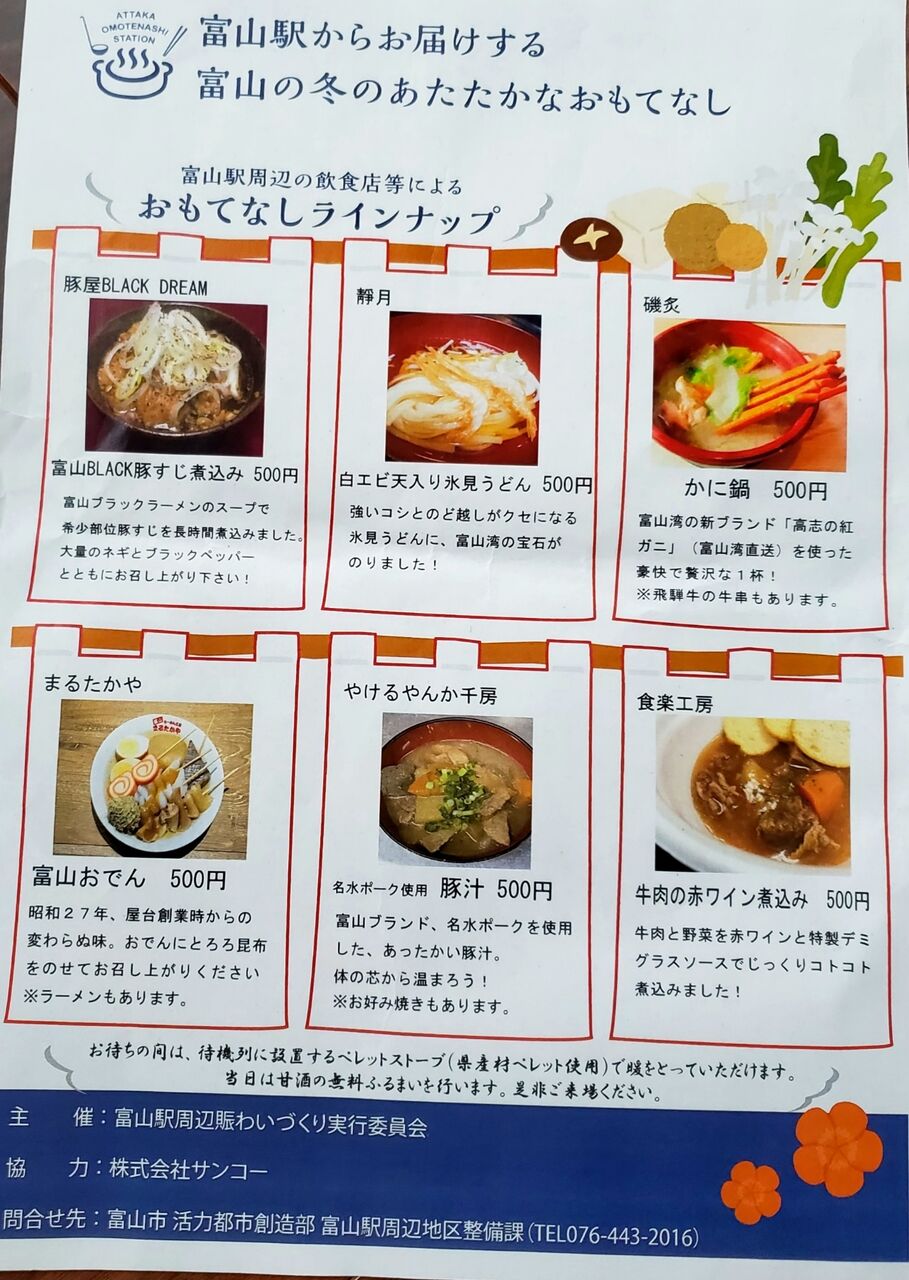 会 場:富山駅南口(おもてなしブース)、富山駅南北自由通路(飲食ブース)