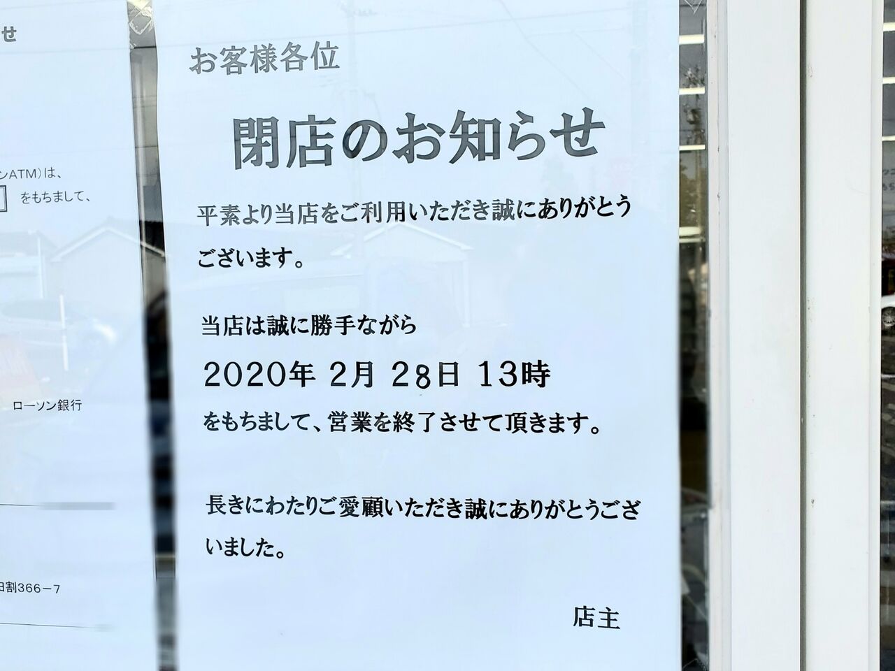 長く営業されてた店舗の閉店…