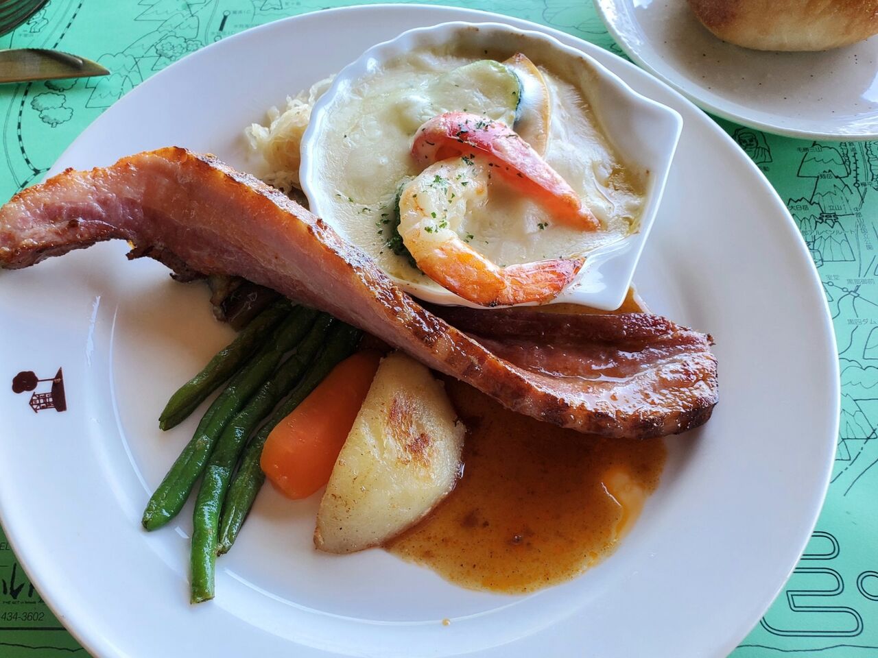 『城山自家製ベーコン焼きとハンバーグのコンビランチ』