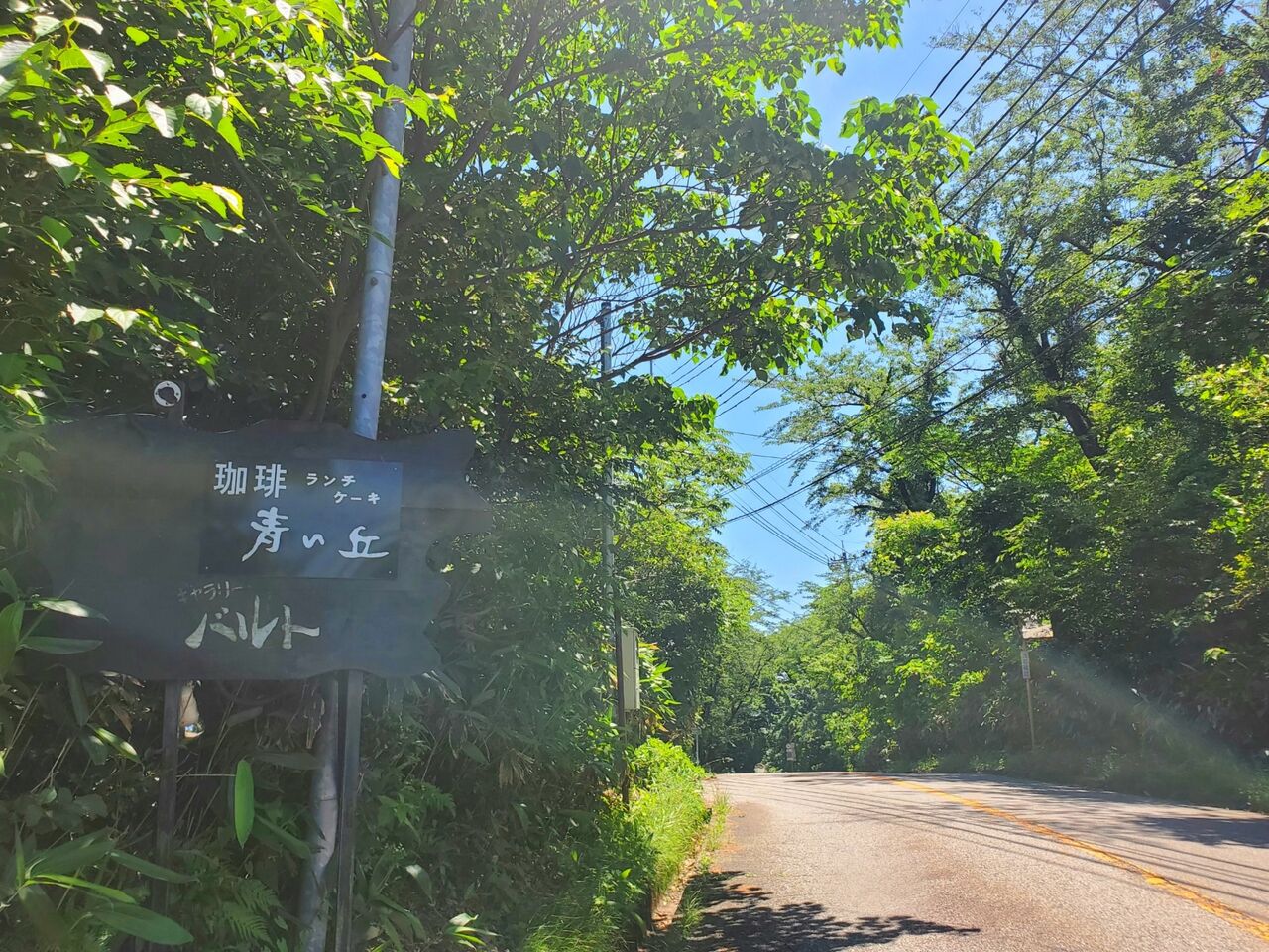 『青い丘』の看板が見えたら