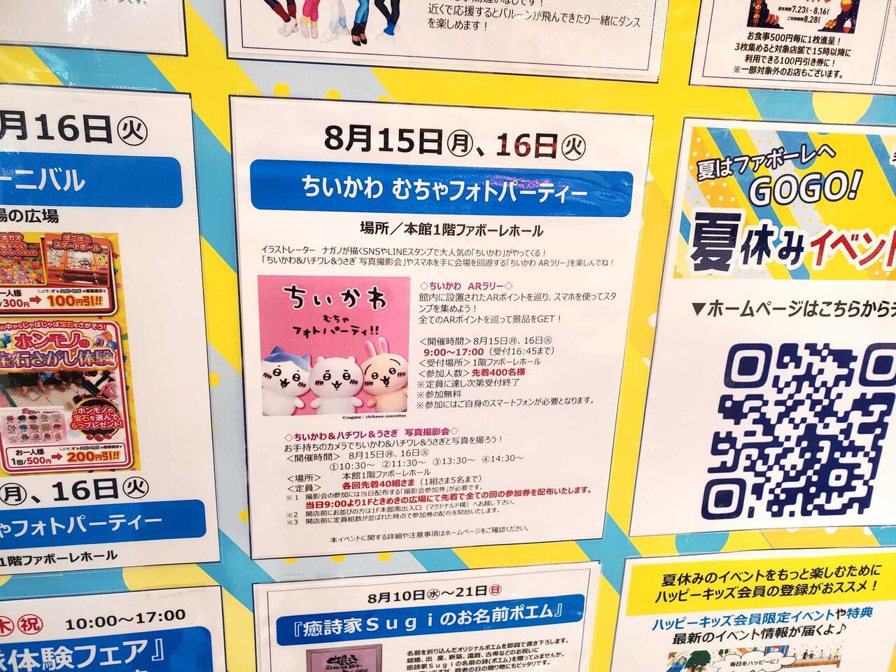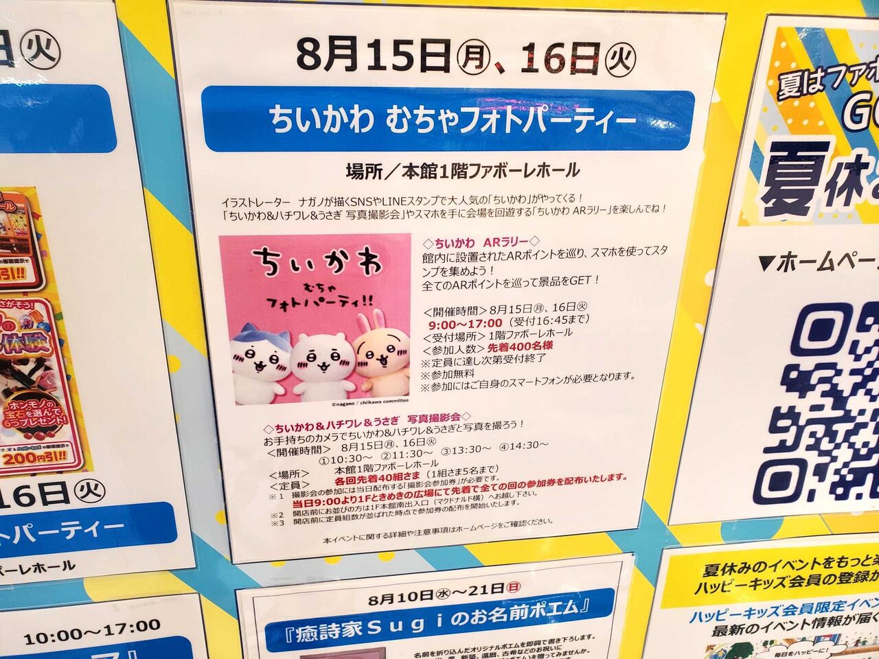 時間:ちいかわ&ハチワレ&うさぎ写真撮影会10:30~・11:30~・13:30~・14:30~(※各回先着40組。整理券要)、ちいかわ ARラリー9:00~17:00(※先着400名)
