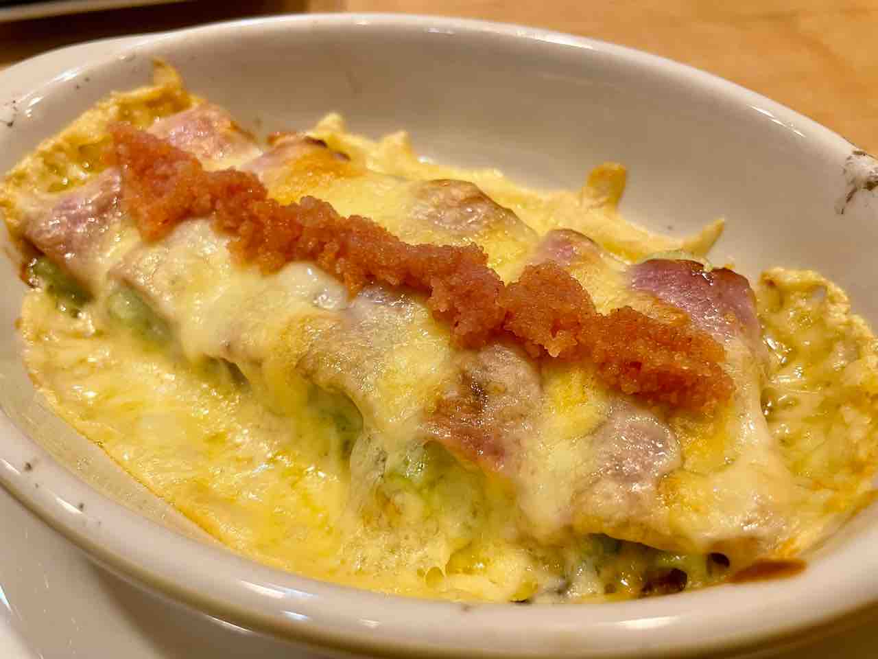 『ねぎベーコンのチーズ焼き~明太子のせ~』