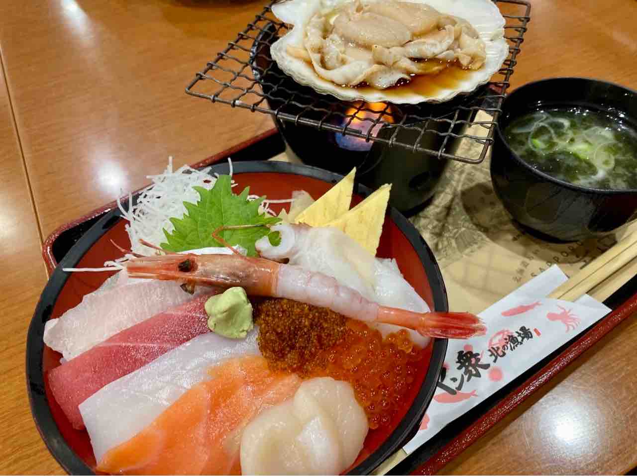 海鮮丼に焼きホタテ…朝から贅沢〜!!
