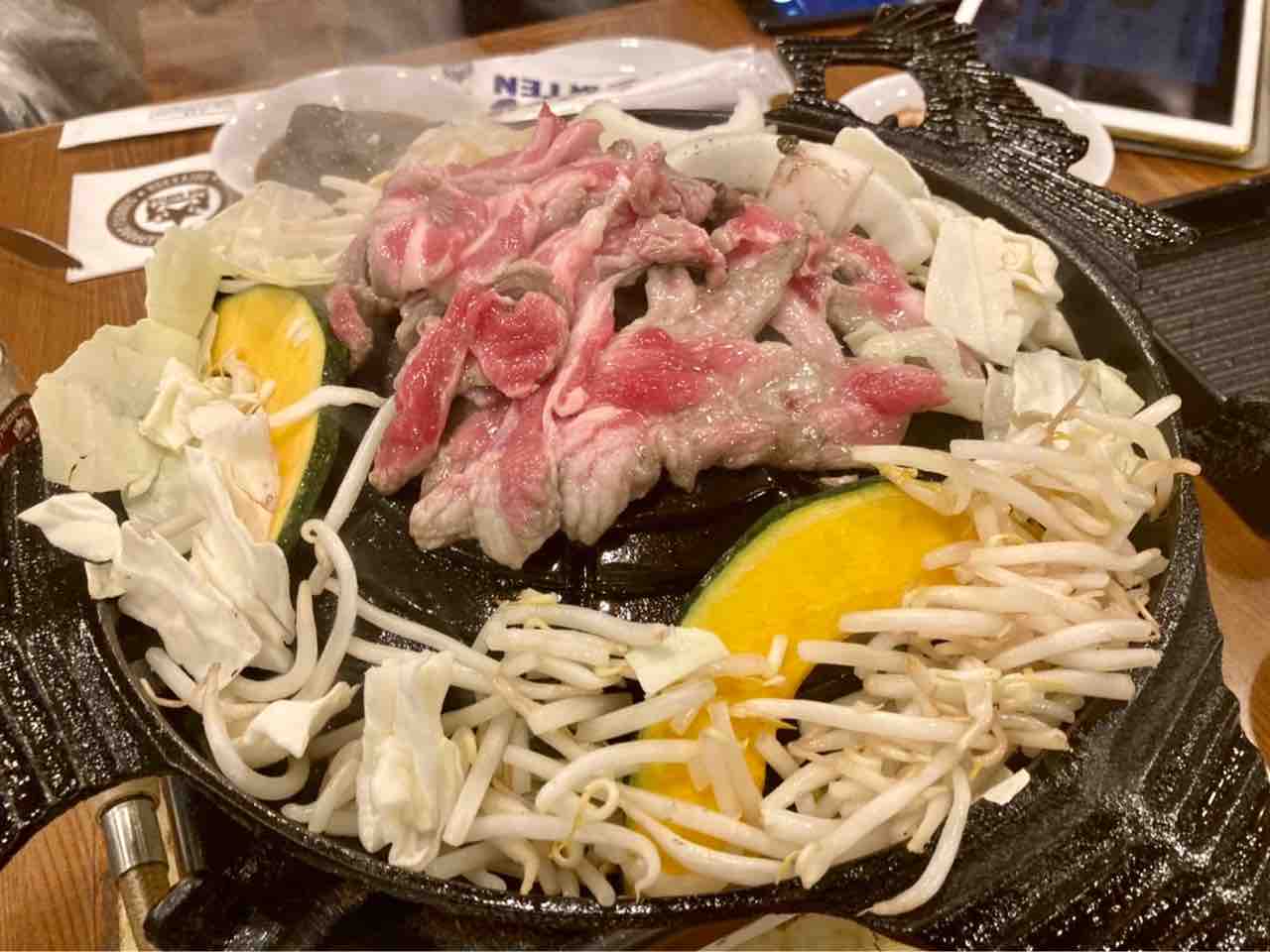 真ん中にお肉、周りに野菜で焼いてく!と…