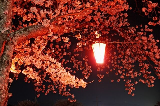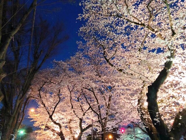 ライトアップされた桜、