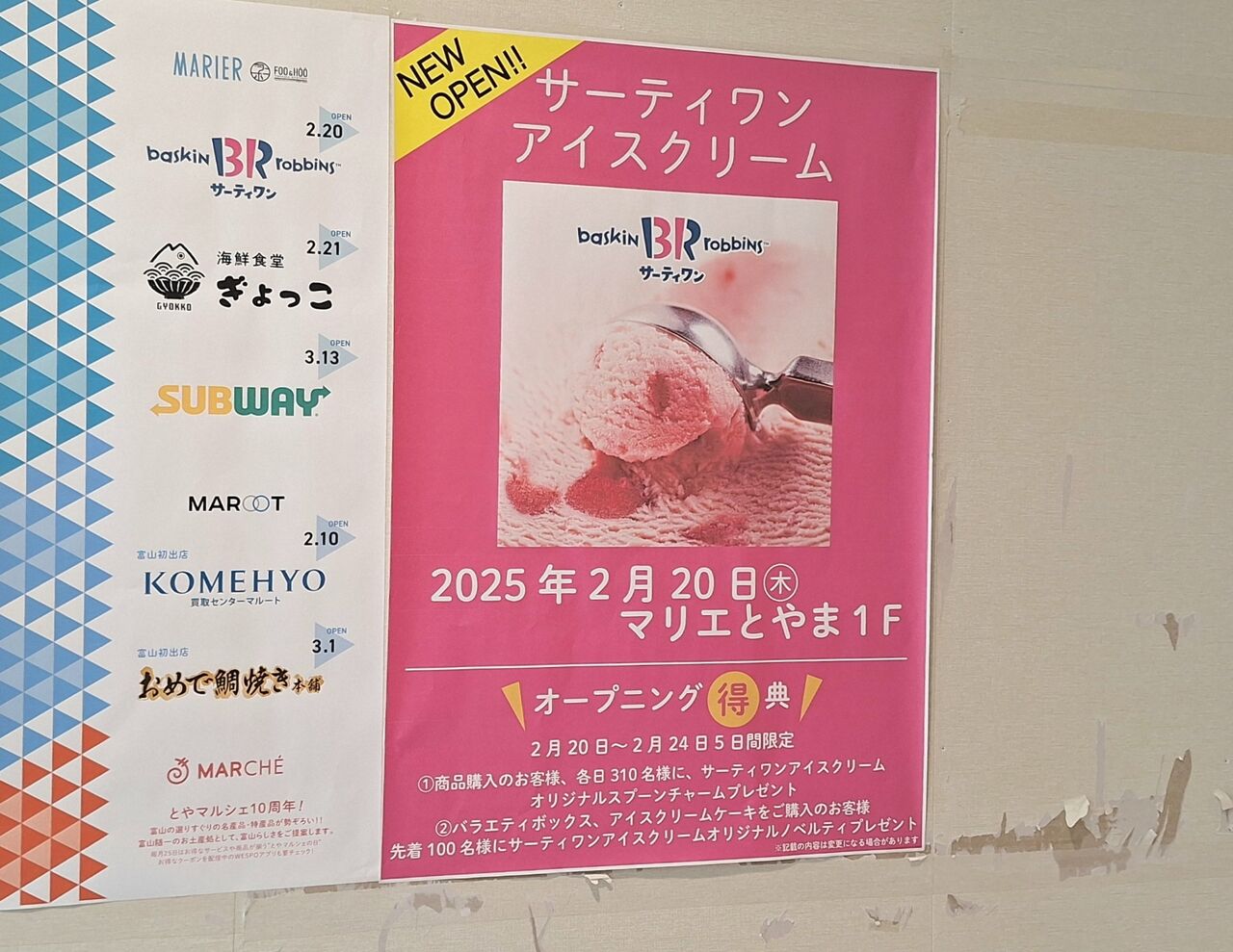 店 名:サーティワンアイスクリーム マリエとやま店(baskin robbins)