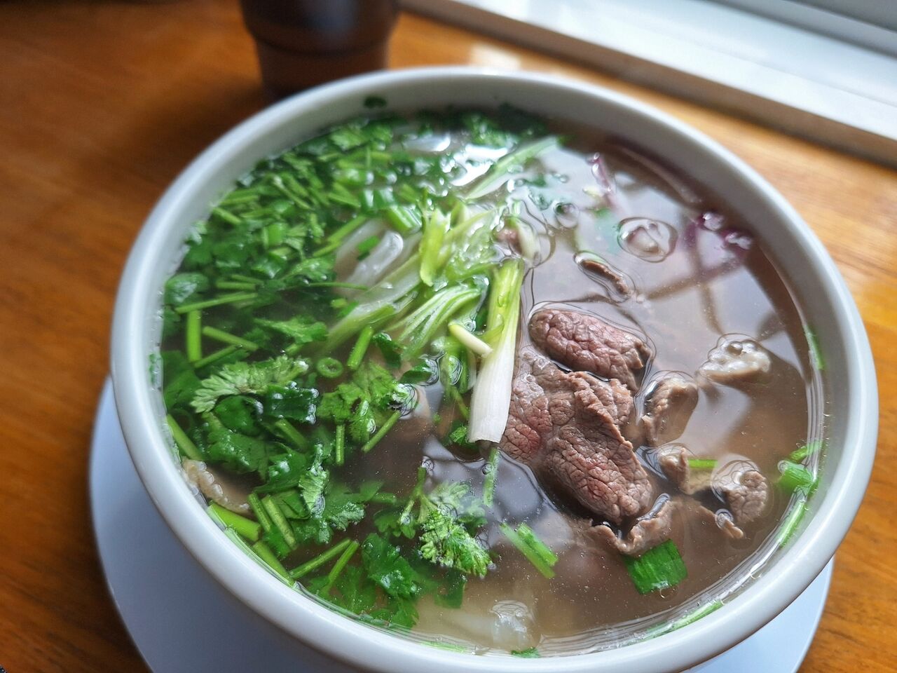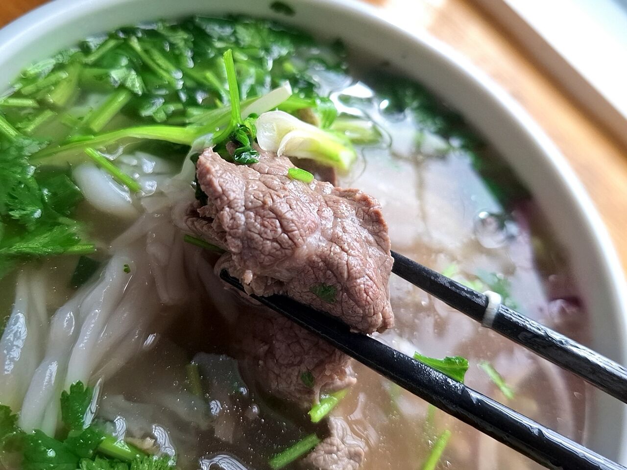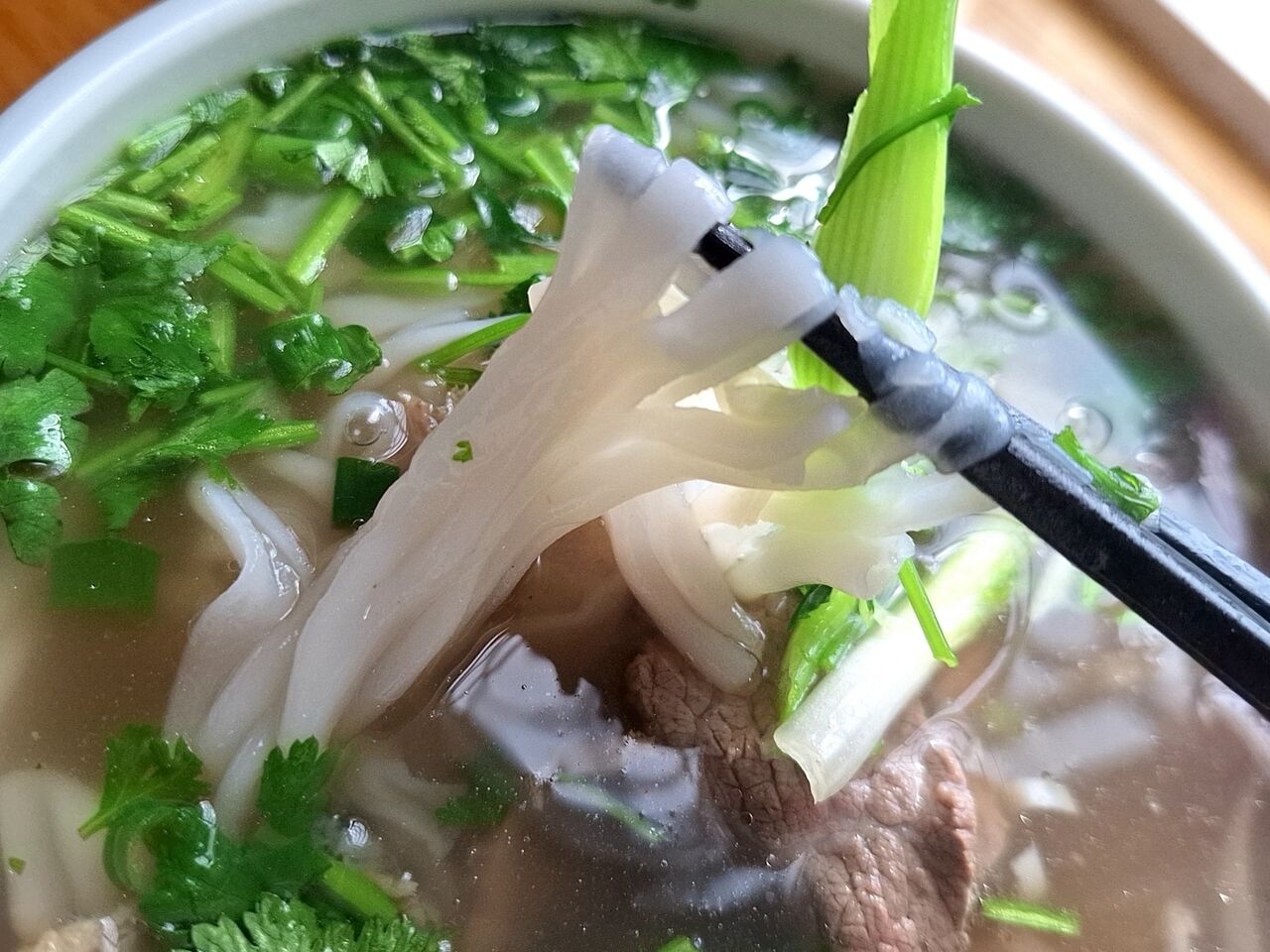 レアとウェルダンの牛肉の入ったフォー。
