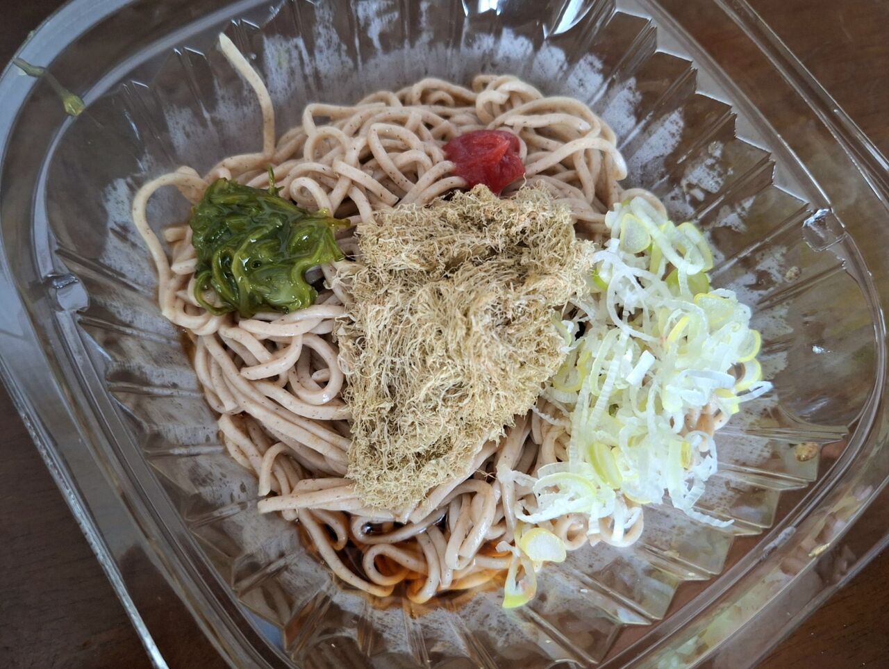 梅、めかぶ、ねぎをトッピングした