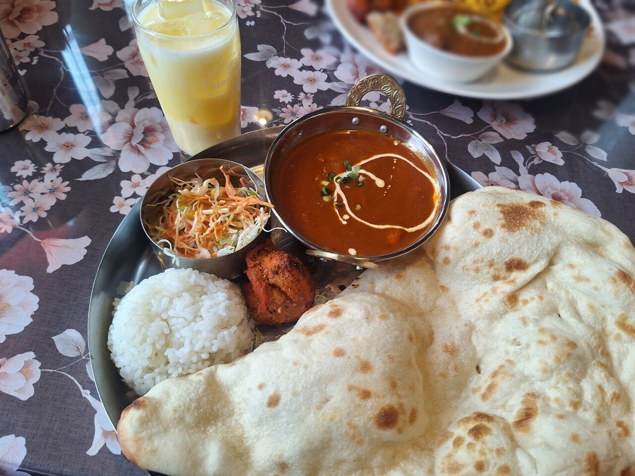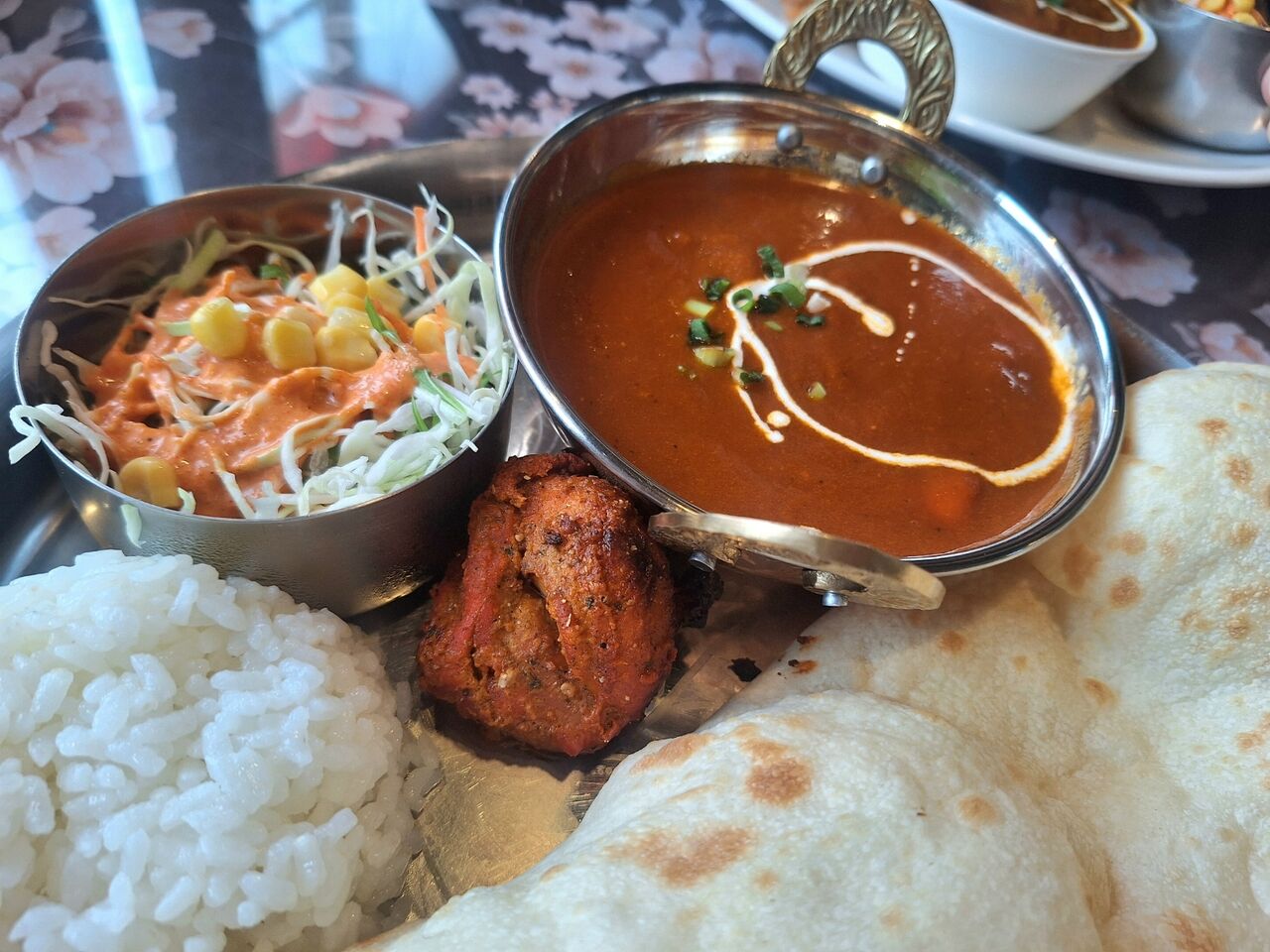 サラダとナン、ライス、チキンティッカ、