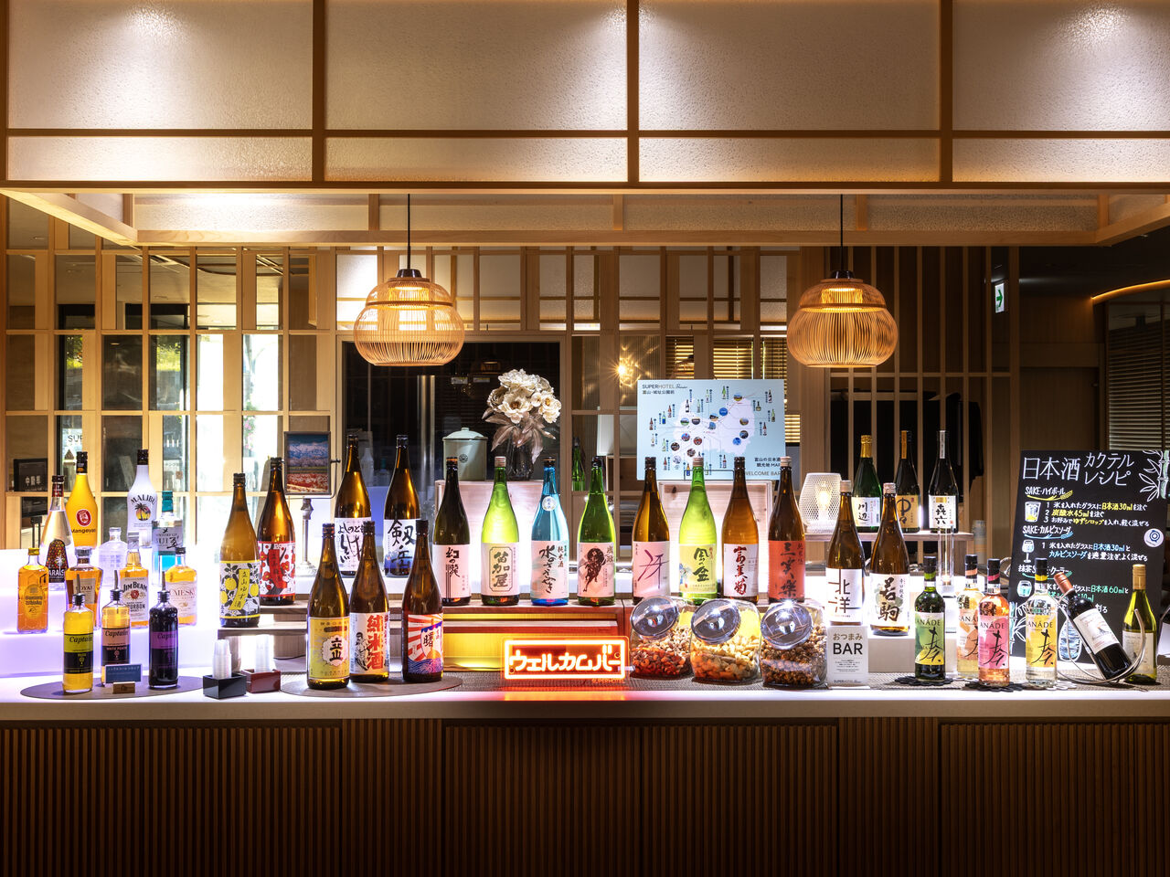 いろんな種類のドリンクがあるウェルカムバー。