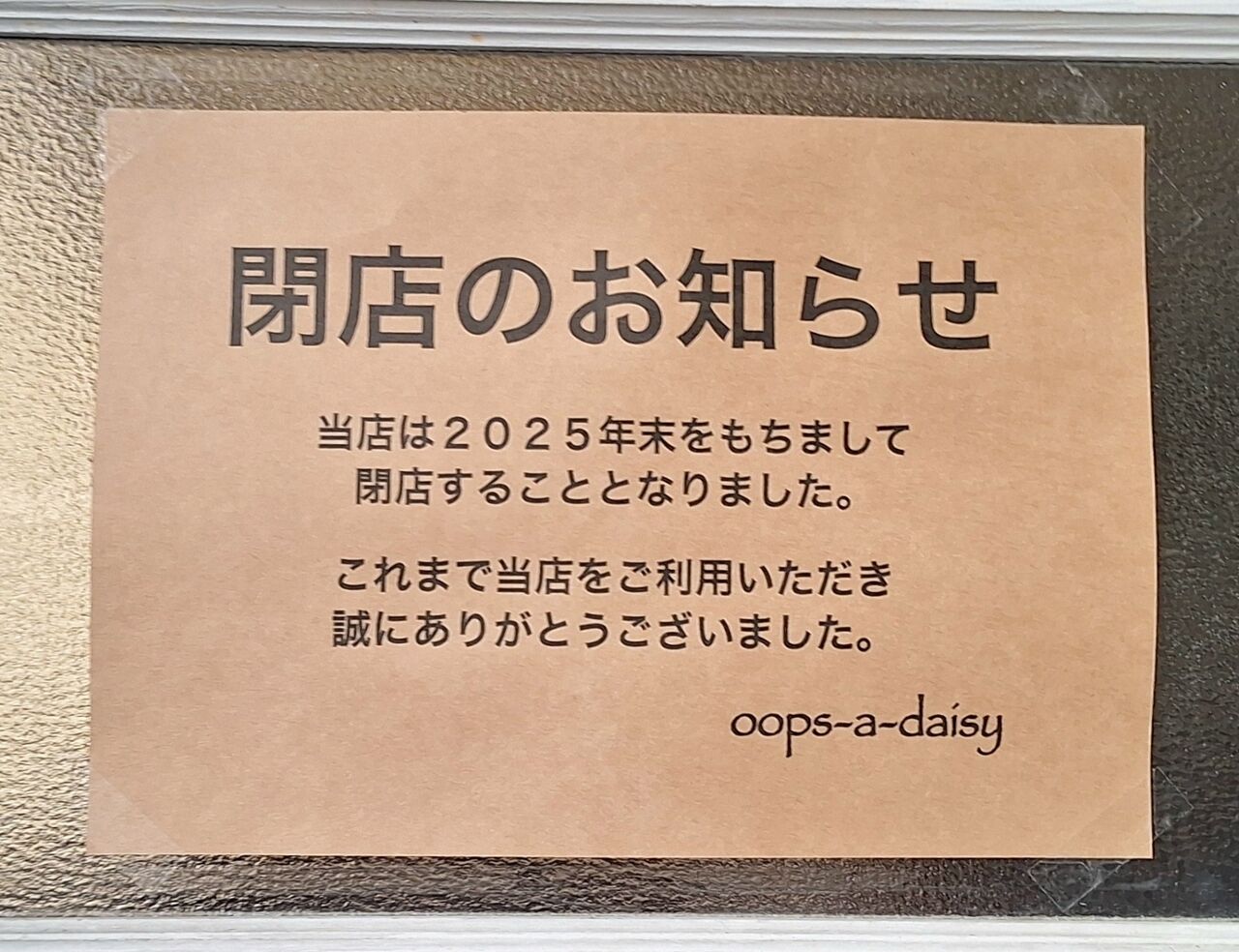 突然の閉店のお知らせが。