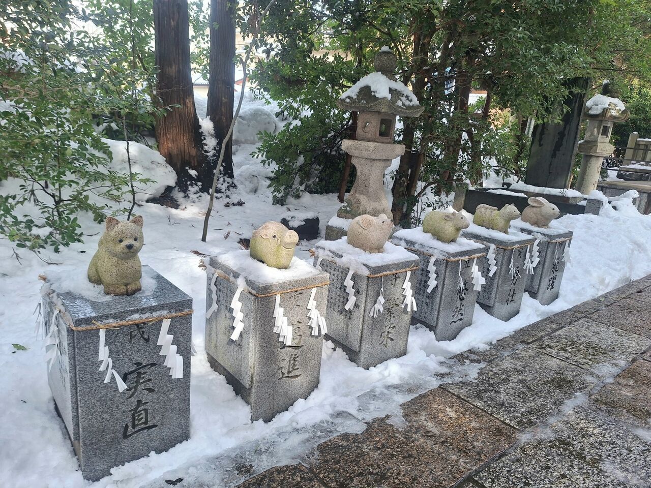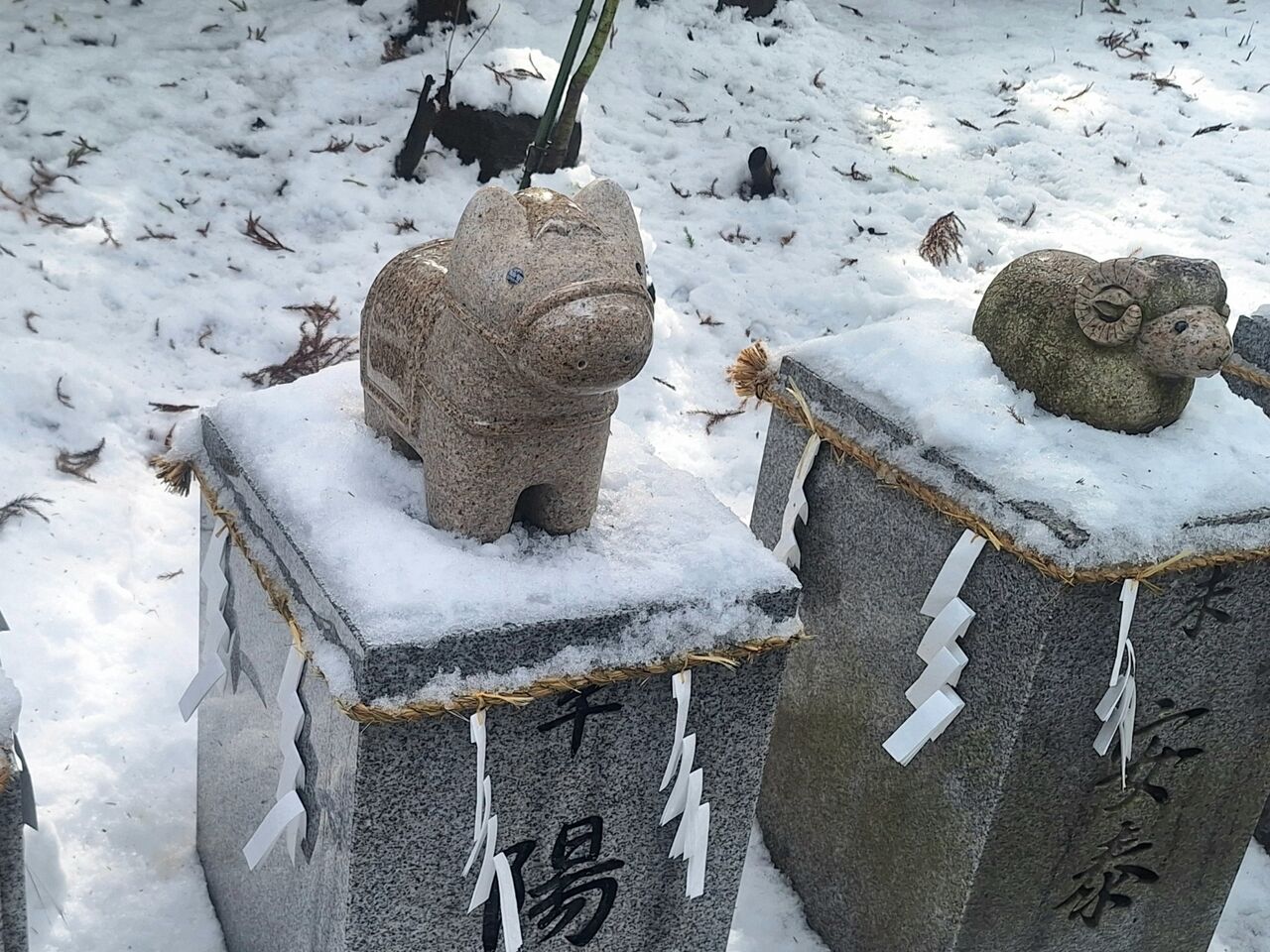 可愛らしい干支の石像があるな…
