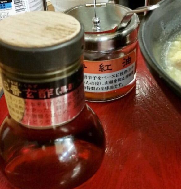 ラー油?と黒酢?ついてきます!